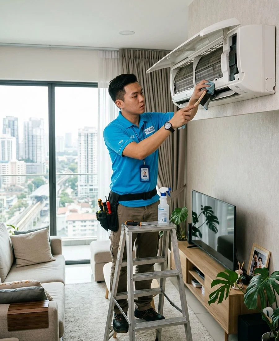 "Booked a chemical wash for four wall units at our Sixteen Residences apartment. The team protected the parquet with drop cloths from the lift lobby in, and cooling was back to near-new within the same afternoon. No musty smell at all now."